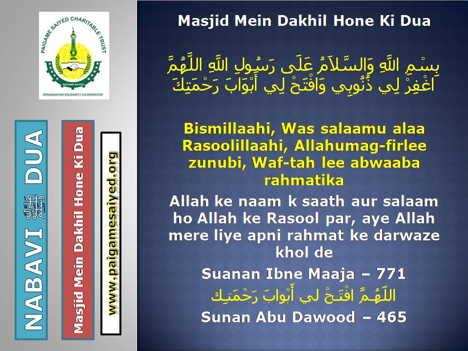 Masjid mein Dakhil hone ki Mukhtalif Duaein