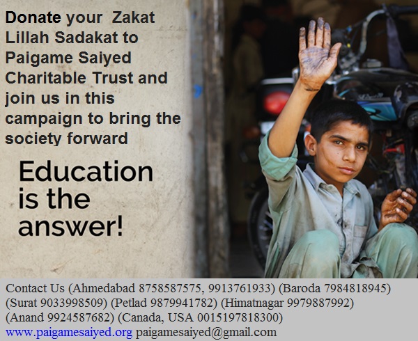 0 Comments अपनी ज़कात लिल्लाह सदक़ात पैगामे सैयद चेरिटेबल ट्रस्ट मैं जमा करवाएं और समाज को आगे लाने की इस मुहीम में हमारा साथ दें. राब्ता करें 8758587575 www.paigamesaiyed.com Tags: Charity, Sadqat, Social Work, zakat